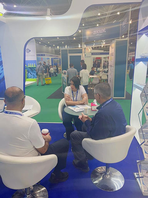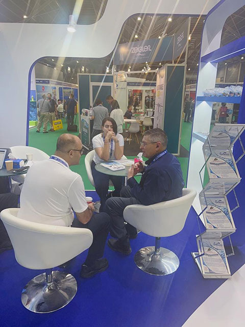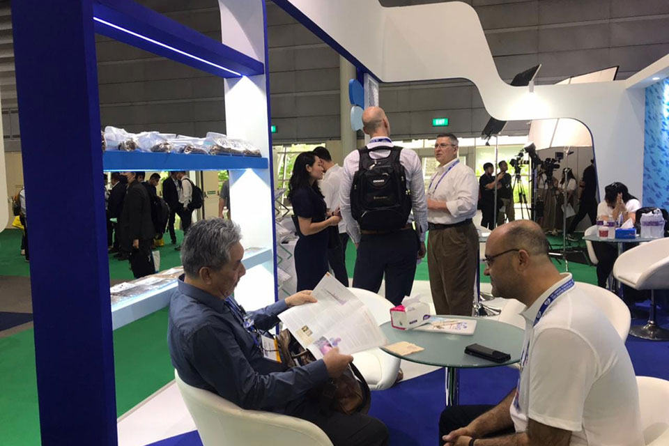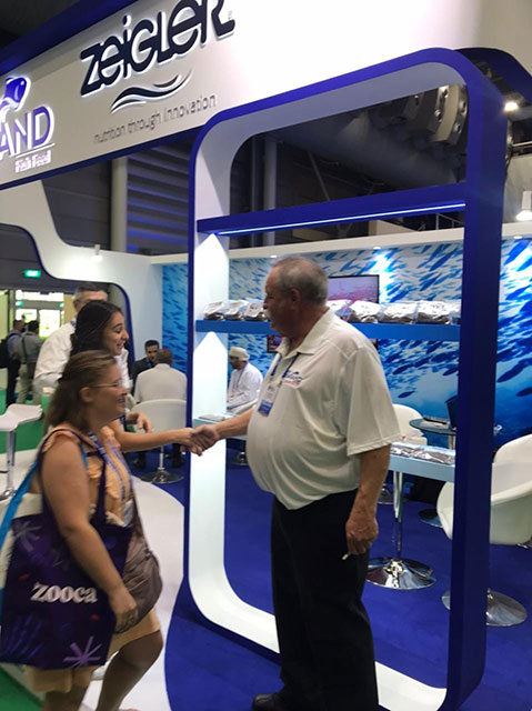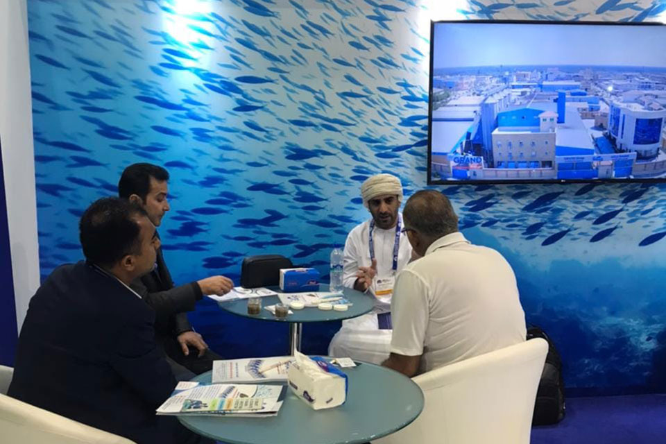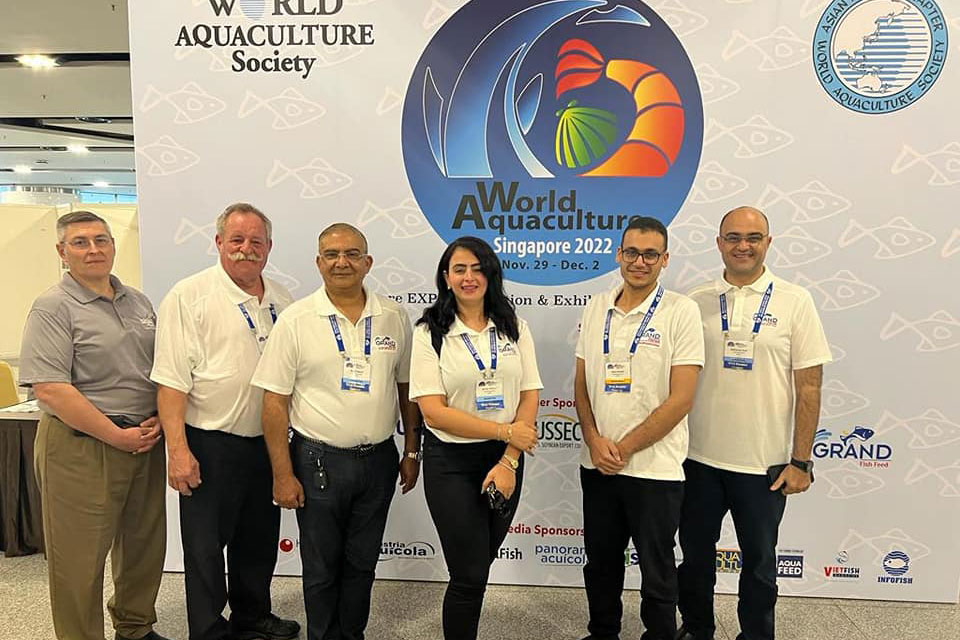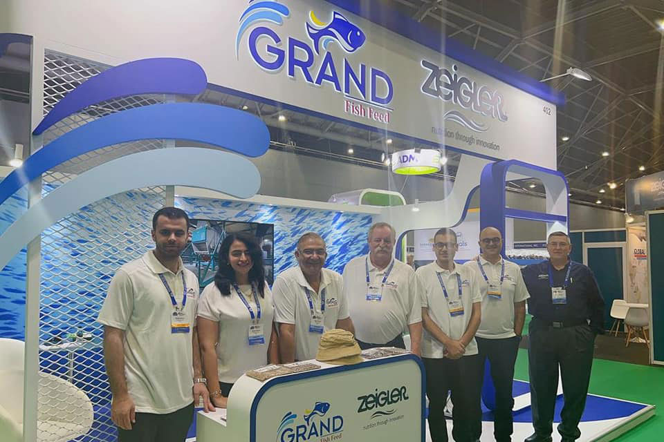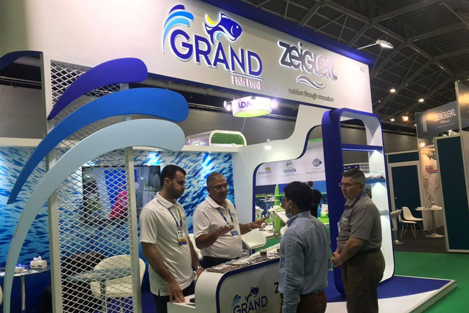جناح شركة مجموعة جراند لتصنيع أعلاف الأسماك بمعرض الاستزراع المائى الدولى 2022 بسنغافورة