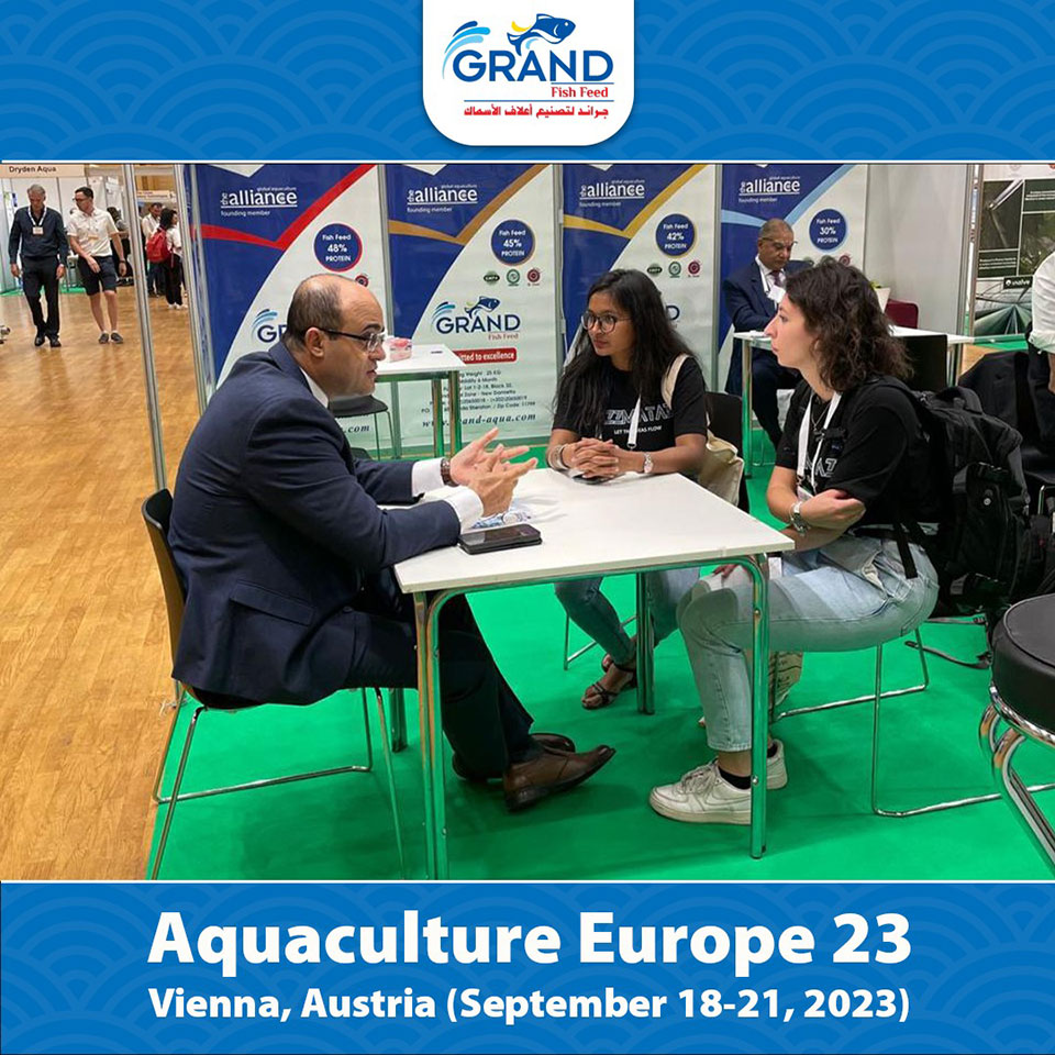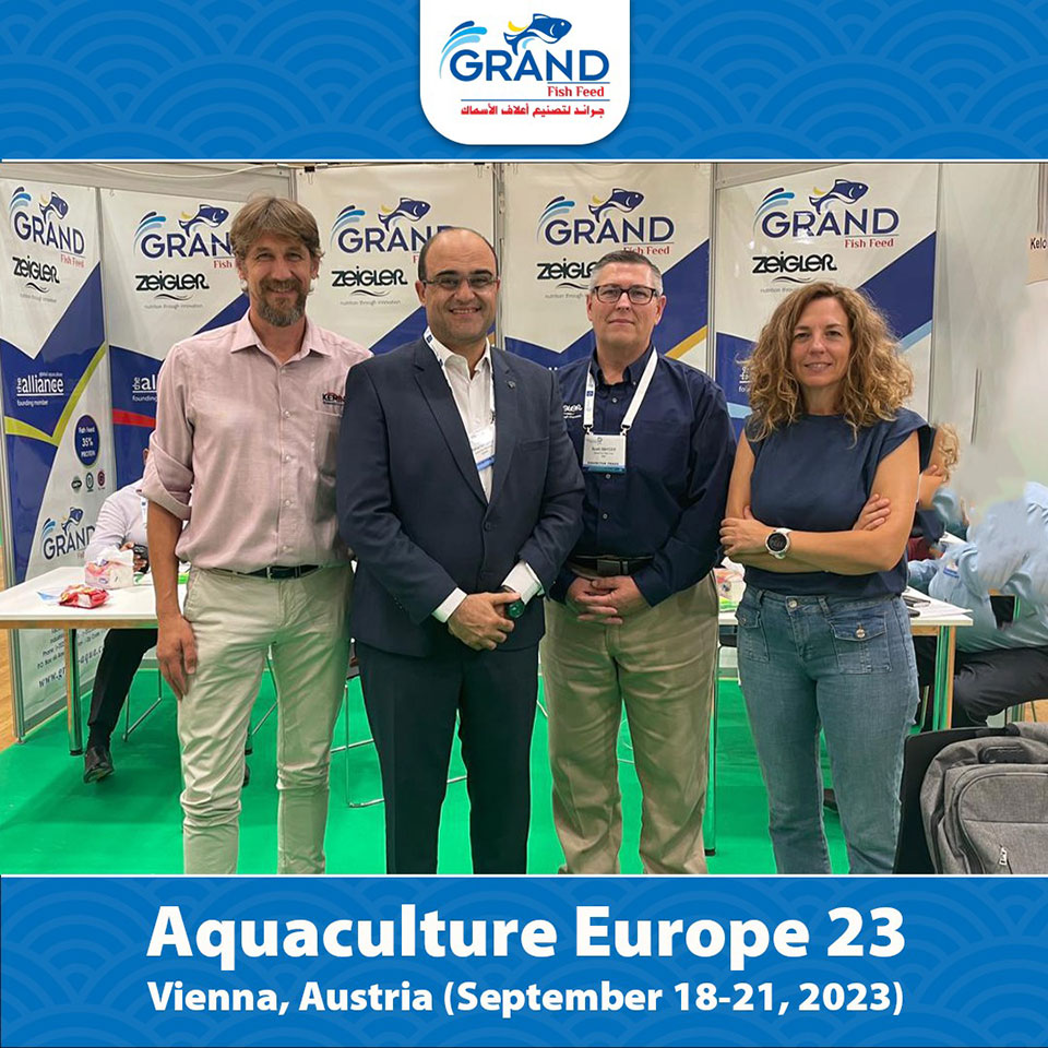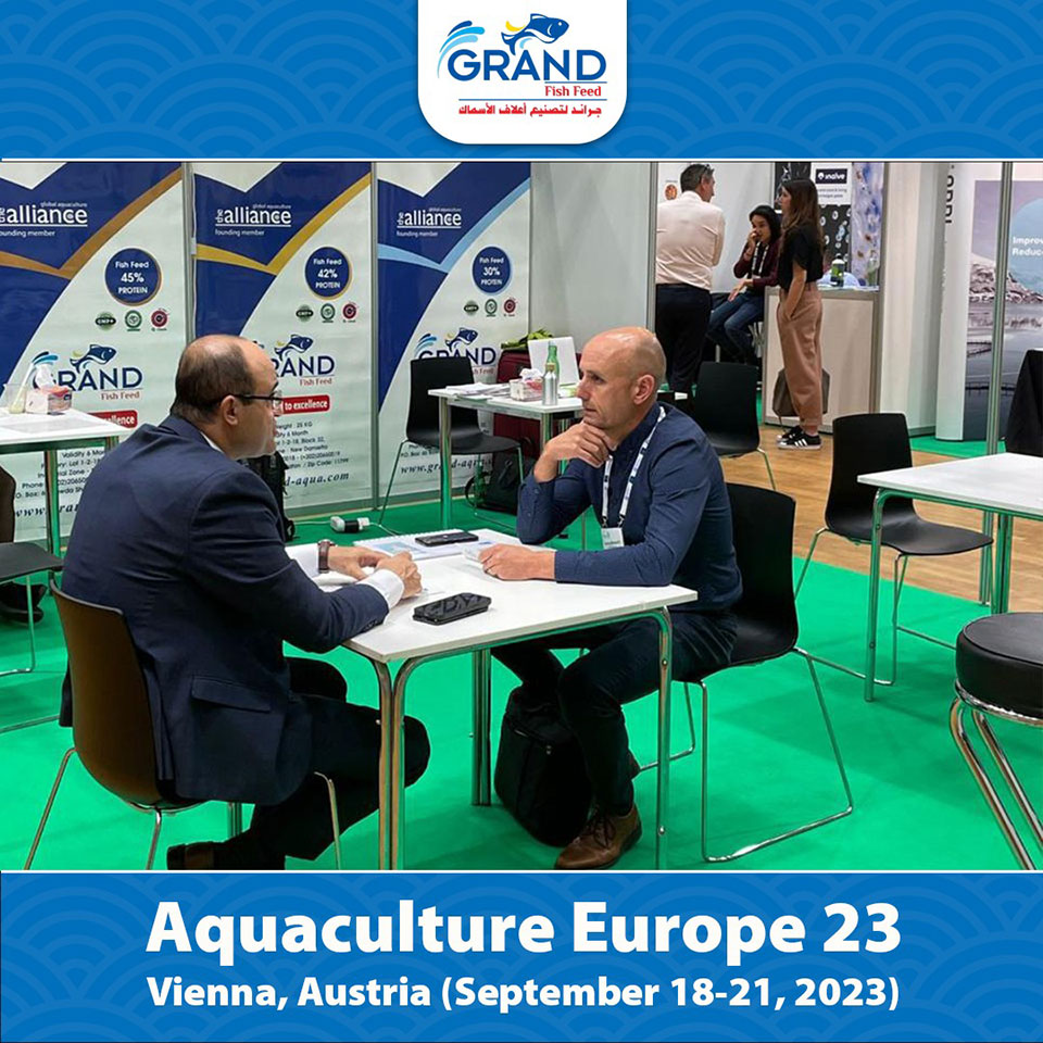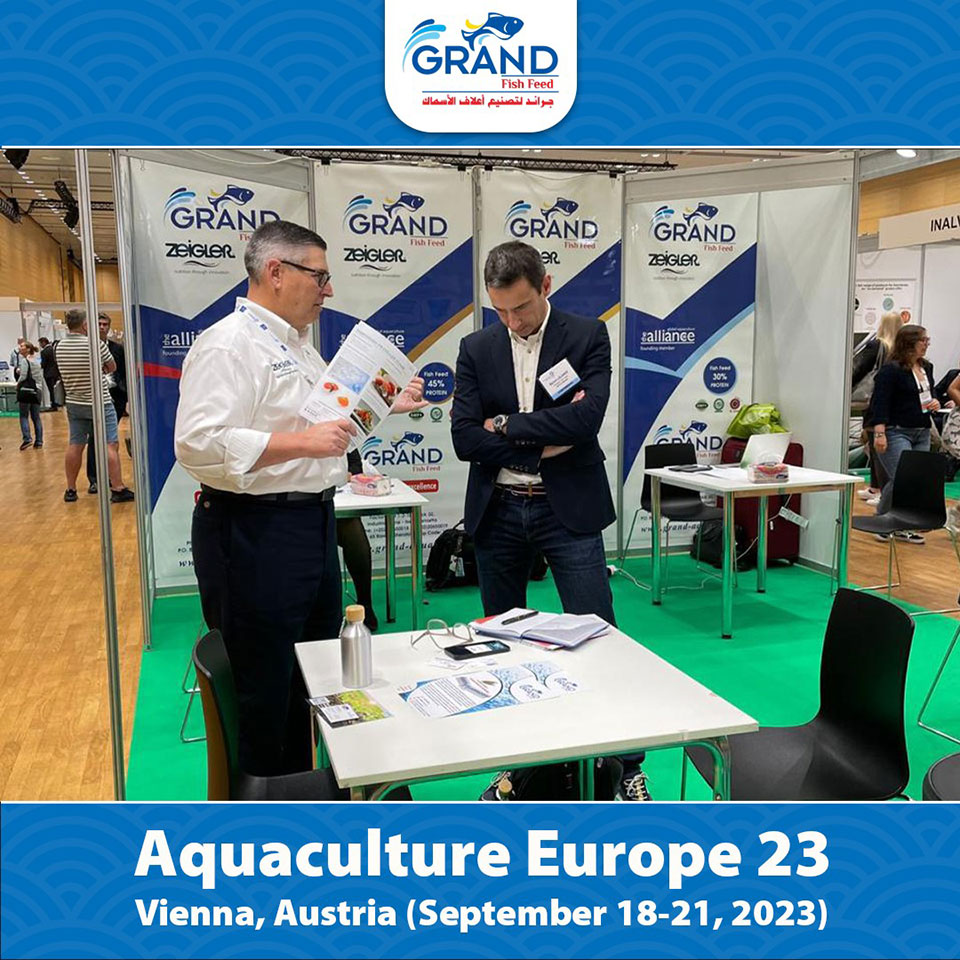 جناح شركة مجموعة جراند لتصنيع أعلاف الأسماك بمعرض الاستزراع المائى الاوربى