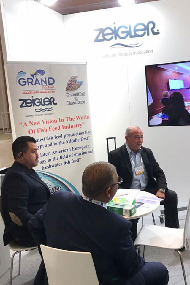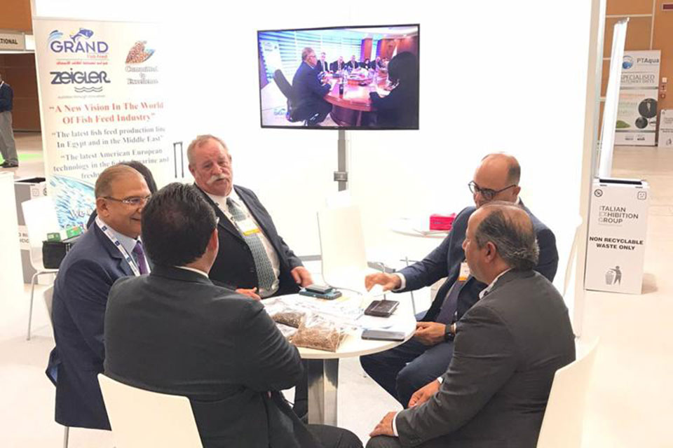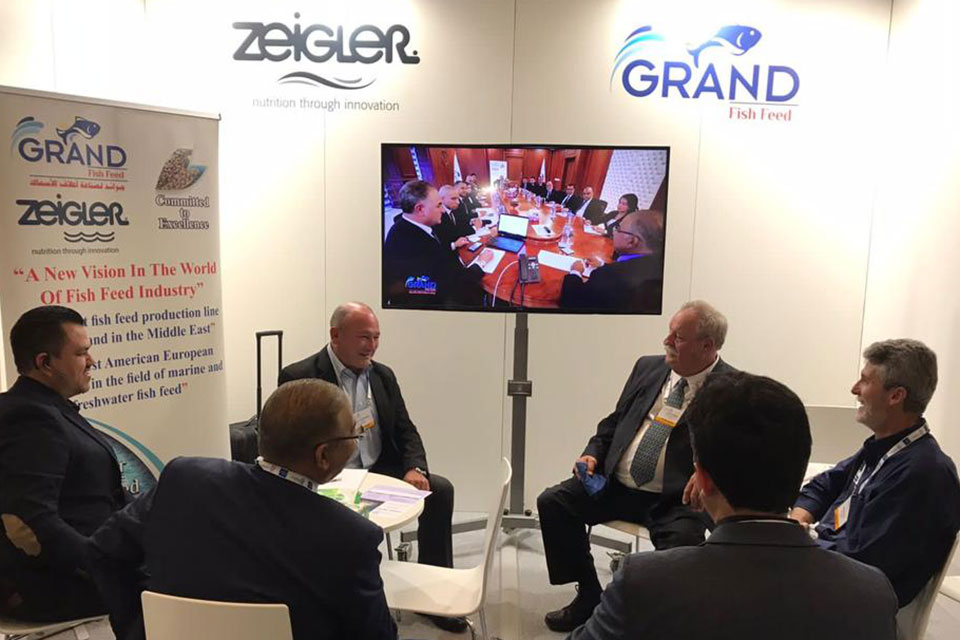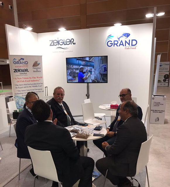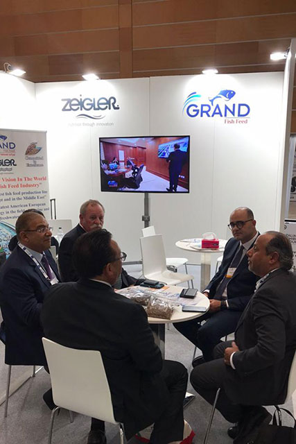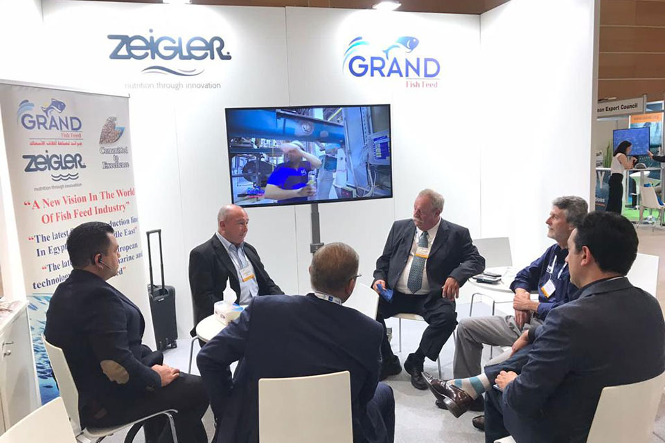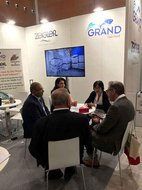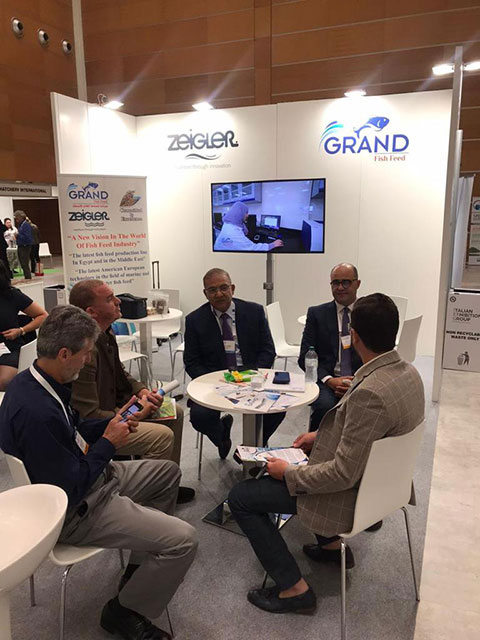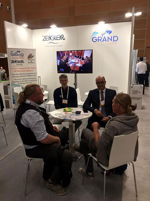 جناح شركة مجموعة جراند لتصنيع أعلاف الأسماك بمعرض الاستزراع المائى الاوربى