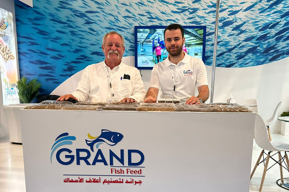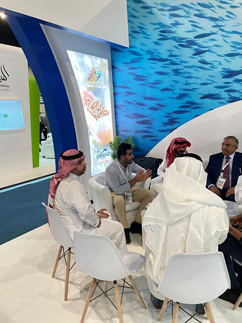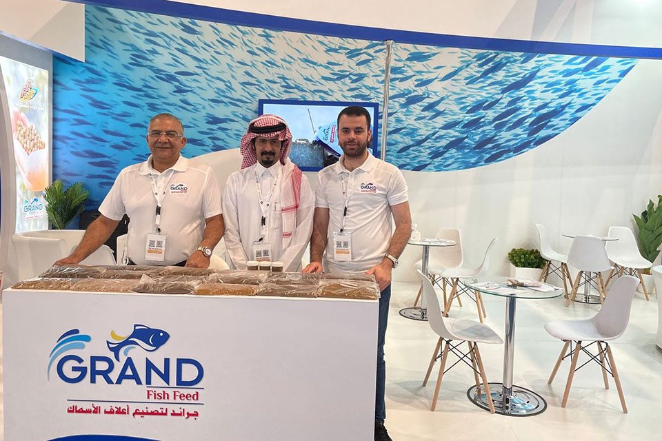 Booth of Grand group for fish feed the silver sponsor of Saudi international marine exhibition.